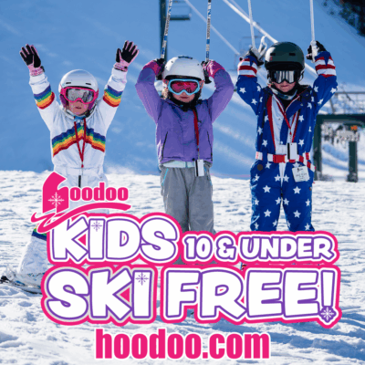 Kids ages 10 and under always ski free at Hoodoo! Just ask for a free lift ticket at the ticket office.